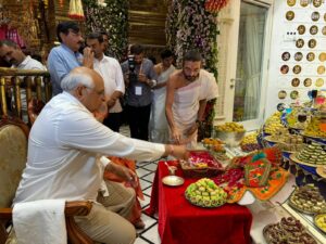 મુખ્યમંત્રી શ્રી ભૂપેન્દ્ર પટેલ આ મહાઅન્નકૂટની આરતીમાં સહભાગી થયા હતા. તેમણે શ્રદ્ધાપૂર્વક હનુમાનજી મહારાજની આરતી કરી હતી અને સૌ લોકોના સુખ, શાંતિ, સમૃદ્ધિની મંગલ પ્રાર્થના પણ આ હનુમાન જયંતિ અવસરે કરી હતી.