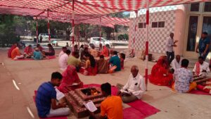 (*લલીત નિમાવત દ્વારા*) જોડિયાધામ : જામનગર જિલ્લાના જોડિયાધામ ખાતે આવેલ શ્રી ઉદાસીન સંત કુટિર ” રામવાડી ” ની પાવન તપોભૂમિમાં શ્રી જ્યોતિ સ્વરૂપ બાલા હનુમાનજી મહારાજદાદાના પાવન સન્મુખ તૅમજ પ્રાતઃ સ્મરણીય ૧૦૦૮ સદગુરૂદેવશ્રી ભોલેબાબાજીની અસીમ કૃપાથી તથા રામવાડીના બ્રહ્મલિન મહંતશ્રી ભોલેદાસજીબાપુની તપોભૂમિમાં તા, ૨૩ મીના મંગળવારના રોજ શ્રી હનુમાન જ્યંતીના પાવન પર્વે સવારે ૭ : ૦૦ થી ૮ : ૩૦ શ્રી જ્યોતિ સ્વરૂપ બાલા હનુમાનજી મહારાજદાદાનું મત્રોચાર સાથે શાસ્ત્રીશ્રી ઉદયભાઈ શાસ્ત્રીજી તથા પૂજારીશ્રી શનિભાઈ વ્યાસ તથા બ્રાહ્મણો દ્વારા વિશેષ પૂજન અર્ચનવિધી શ્રી હિરેનભાઈ વડેરા ( વડેરા પરિવાર ) દ્વારા કરવામાં આવેલ હતુ તૅમજ ધજાવિધી કરવામાં આવેલ હતી આ ઉપરાંત સવારે ૯ : ૦૦ થી ૧૨ : ૦૦ હોમાત્મક યજ્ઞ યોજાયેલ જેમાં સુંદરકાંડની પ્રત્યેક ચોપાઈ દ્વારા સૌ સાધક ભાઈઓ, બહેનોએં આહુતિ આપેલ હતી ત્યારબાદ બપોરે ૧૨ : ૦૦ ક્લાકે ઢોલ, નગારા, શખો અને ઝાલરના નાદથી દીપમાળા સાથે શ્રી જ્યોતિ સ્વરૂપ બાલા હનુમાનજી મહારાજદાદાની ” મહાઆરતી ” કરવામાં આવેલ હતી તૅમજ સવારે ૮ થી ૧૨ દરમ્યાન બાળકોનું બટુકભોજન યોજાયેલ હતુ શ્રી હનુમાન જ્યંતીના પાવન પર્વે નીજ મંદિરમાં અનોખા શણગાર દર્શન કરવામાં આવેલ હતા વિશાળ સંખ્યામાં ભાવિક ભક્તજનોએં મહાઆરતીના, યજ્ઞ ના દર્શનનો લાભ લઈ ધન્યતા અનુભવેલ હતી