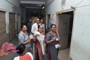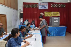 મહિલા મતદાન મથક પર મતદારો ઉત્સાહભેર મતદાન કરી રહ્યા છે અને મહિલા સ્ટાફ દ્વારા આ મતદારોને સંવેદના પૂર્ણ મતદાન કરાવવામાં આવી રહ્યું છે.