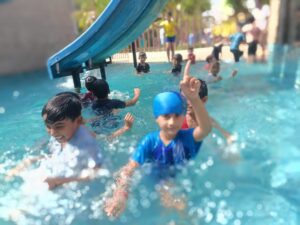 વિદ્યાર્થીઓનું સ્વાગત એર કેરેકટરે અભિવાદન જીલી, હાથ મિલાવી ને કર્યું. ઘોડા ગાડી દ્વારા સફર કરાવતા તેમને પ્રવેશ દ્વાર સુધી પહોંચાડ્યા, તેમજ વિદ્યાર્થીઓને સ્કૂલમાં બનાવેલ સ્વંમિંગ પુલમાં પાણીના ફુવારા અને રાઈડ્સ દ્વારા મોજ માણી હતી.
