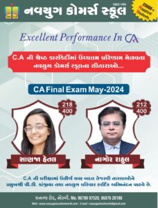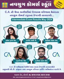 *નવયુગ કોમર્સ સ્કૂલના 12 વિદ્યાર્થીઓ CA ફાઇનલ, ઇન્ટરમીડીએટ અને ફાઉન્ડેશન ની પરીક્ષામાં પણ અદ્ભૂત સિદ્ધિ મેળવી….*