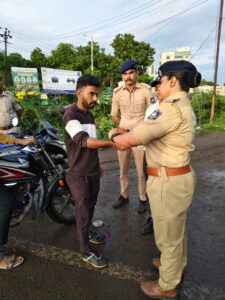 જો લોકો ટ્રાફિકના નિયમોનું ખુદ જ પાલન કરે તો તેની સલામતી અને ખાસ તો તેની ઘરે રાહ જોતો પરિવાર સુખી રહે, પણ લોકો ટ્રાફિકનું પાલન કરતા ન હોય અને ખાસ તો હેલ્મેટ પહેરતા જ ન હોય એટલે તેમની સલામતી ખાતર પોલીસે આજે એક અનોખું રક્ષાબંધન પર્વ ઉજવ્યું હતું. જેમાં હેલમેટ વગર નીકળતા લોકોને રક્ષકવચ બાંધીને હેલ્મેટ પહેરવા સમજાવ્યા હતા અને માનવ જિંદગી કેટલી મૂલ્યવાન છે ખાસ તો તેમની જિંદગી તેમની પોતાની નહિ પણ પરિવારની હોય તેવું સમજાવીને કાયદાકીય કાર્યવાહી પણ કરવામાં આવેલ હતી.