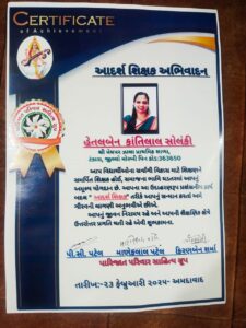 શિક્ષણ અને સાહિત્ય ક્ષેત્ર વિશિષ્ટ કામગીરી બદલ પારિજાત સાહિત્ય સંસ્થા દ્વારા સોલંકી હેતલબેન ને સન્માનિત કરવામાં આવ્યા..