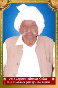*સ્વ.કાનજીભાઇ ભીમભાઈ ડોડીયા* નું તારીખ-૧૧/૩/૨૦૨૫ ને મંગળવાર ના રોજ દુઃખદ અવશાન થયેલ છે પ્રભુ તેમના આત્મા ને શાંતિ અર્પે તેવી પ્રાર્થના….