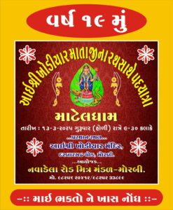 મોરબી:તા ૧૨ આવતી કાલ તારીખ ૧૩-૩-૨૫ ને ગુરૂવાર હોળીની રાત્રે ૯:૦૦ કલાકે દરબારગઢ ખોડિયાર માતાજી ના મંદિર ખાતે ૫૧ દીવડાની આરતી માટેલ મંહત શ્રી ખોડીદાસબાપુ કરશે તો ભક્ત જનોને દશૅન કરવા પધારવા આયોજકો દ્વારા નિમંત્રણ પાઠવવામાં આવ્યું છે