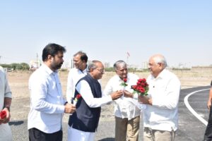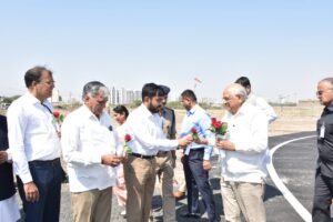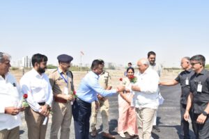 મોરબી જિલ્લાના વિવિધ વિકાસકાર્યોના લોકાર્પણ તથા ખાતમૂહુર્ત પ્રસંગે પધારેલા ગુજરાતના મુખ્યમંત્રીશ્રી ભૂપેન્દ્ર પટેલનું મોરબી હેલિપેડ ખાતે સ્થાનિક પદાધિકારીશ્રીઓ અને અધિકારીશ્રીઓ દ્વારા ઉષ્માભર્યું સ્વાગત કરવામાં આવ્યું હતું.