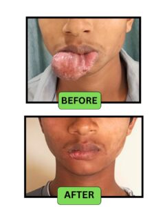 રાજકોટના ૧૮ વર્ષના યુવાન ને નીચેના હોઠના ભાગે લોહીની નળીની ગાંઠ (ARTERIO-VENOUS MALFORMATION) થયેલી હતી.