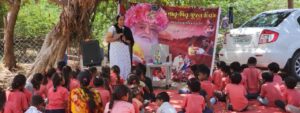 બાલંભા: તા ૧૪ (*લલિત નિમાવત દ્વારા*)શ્રીચામુંડા માતા મંદિર, શાંતીનગર, બાલંભા તા.જોડિયા જી.જામનગર માં શ્રી હનુમાન જયંતિ નિમિત્તે, તા.12 એપ્રિલ ના રોજ બપોરે 11 થી 1 વાગ્યા સુધી શાંતીનગર, પ્રાથમિક શાળાના વિદ્યાર્થીઓ માટે માસિક બાળસંસ્કાર કેન્દ્ર માં વિદ્યાર્થીઓને આસન-પ્રાણાયમ, પ્રસંગોપાત હનુમાન ચાલીસા નો પાઠ, પ્રેરક વાર્તા, રમત ગમત કરાવવા માં આવેલ. આ પ્રસંગે કલરફુલ સચિત્ર વાળી શ્રી હનુમાન ચાલીસા ની પુસ્તક બધા જ વિદ્યાર્થીઓ ને ભેટ તેમજ પ્રશ્નોતરી માં ઇનામ વિતરણ આપવામાં આવેલ તેમજ બધા જ વિદ્યાર્થીઓ માટે ભોજનપ્રસાદ ની વ્યવસ્થા કરવામાં આવેલ તેની તસવીરી ઝલક