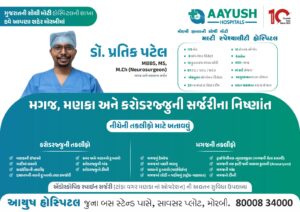 આવી કપરી પરિસ્થિતિ મા આયુષ હોસ્પિટલ મોરબી ખાતે neurosurgeon ડૉ પ્રતિક પટેલ સાહેબે તથા anesthetist ડો અદિતિ મેડમ એ સીમેન્ટ સાથે સ્ક્રૂ (cement with screw) નો ઉપયોગ કરી 75 વર્ષીય વડીલ નુ મણકા નુ ઓપરેશન સફળતા પૂર્વક પાર પાડયુ.