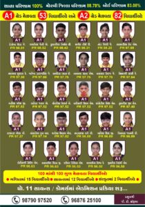 કુલ 275 વિદ્યાર્થીઓમાંથી 53 વિદ્યાર્થીઓ A1 ગ્રેડ અને 82 વિદ્યાર્થીઓ A2 ગ્રેડ સાથે 135 વિદ્યાર્થીઓ ઉત્તીર્ણ થયાં છે. જયારે 99 થી વધુ PR મેળવનારા વિદ્યાર્થીઓની સંખ્યા 17 અને 95 થી વધુ PR મેળવનારા વિદ્યાર્થીઓની સંખ્યા 61 અને 90 થી વધુ PR મેળવનારા વિદ્યાર્થીઓની સંખ્યા 99 જેટલી રહી. એકંદરે આવું ઉત્તમ પરિણામ મેળવી ઉત્તીર્ણ થવા બદલ તમામ વિદ્યાર્થીઓને સંસ્થાના પ્રમુખશ્રી પી.ડી.કાંજીયા તથા નવયુગ પરિવાર તરફથી ખૂબ ખૂબ અભિનંદન સાથે આવી જ ઉત્તરોત્તર પ્રગતિ કરો તેવી શુભેચ્છા.