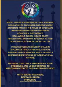 MUN વાટાઘાટો, સહયોગ અને સમાધાનની કળા શીખવે છે – કોઈપણ ભાવિ નેતા માટે આવશ્યક જીવન કૌશલ્યો.