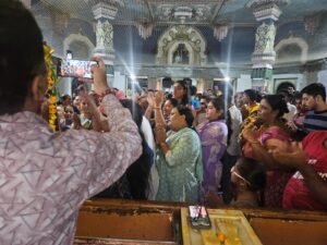 પૂજાબેન ઠક્કર, શિલ્પાબેન જોષી, હર્ષાબેન, દિનેશભાઇ ચોકસી, મહેન્દ્રભાઈ ઠક્કર, ધૈર્ય જોષી સહિતના હરિભક્તોએ ભજનો ગાઈ સૌને રસતરબોળ કર્યા હતા.સમગ્ર કાર્યક્રમનું યુ ટ્યુબ જીવંત પ્રસારણ લોહાણા ન્યૂઝના તંત્રી આનંદભાઈ પી ઠક્કરે કર્યું હતું.આ શુભ અવસરે જલારામ ભકતો સર્વ શશીકાંતભાઈ ડી ઠક્કર, તારાચંદભાઇ મજેઠીયા, કલ્પેશભાઈ -લાલાભાઈ, હિતેશભાઈ સોનપાલ, મહેશભાઈ પોપટ, અમીતભાઈ પુરોહિત, કમલેશભાઈ રાચ્છ,રમેશભાઈ, કનુભાઈ, લાલાભાઈ ગોકલાણી, હસમુખભાઈ ઠક્કર,બીનાબેન ઠક્કર, પિન્કીબેન ચોકસી, સોનલબેન ગોકલાણી, વીણાબેન આયા, નીરૂબેન, રીટાબેન સહિત અનેક હરિભક્તોએ ખાસ ઉપસ્થિત રહી સમગ્ર કાર્યક્રમને સફળ બનાવ્યો હતો.ખૂબ મોટી સંખ્યામાં કૃષ્ણ ભક્તોએ જન્માષ્ટમી મહાપર્વમાં હાજરી આપી શ્રીકૃષ્ણનું પારણું ઝૂલાવી અનેરો મહાનંદ માણ્યો હતો.સૌ માટે પંજરી-ચરણામૃતની વ્યવસ્થા શારદાબેન આચાર્ય તેમજ પેંડા -કેવડોના પ્રસાદની વ્યવસ્થા તારાચંદભાઇ દીપચંદભાઈ મજેઠીયા તરફથી કરવામાં આવી હતી.શ્રીકૃષ્ણ જન્મની સૌએ અરસપરસ વધામણી આપી હતી.પૂજારીજી પ્રહલાદભાઈ જોશીએ જન્મોત્સવની મહાઆરતી રાત્રે 12 વાગે કરી ત્યારે સૌ હર્ષઘેલાં બન્યાં હતાં.
