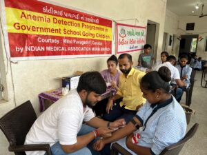 ભારત વિકાસ પરિષદ-મોરબી તથા IMA MORBI (Indian Medical Association) દ્વારા તા. *૨૨/૦૮/૨૦૨૫, શુક્રવાર* નાં રોજ “*શ્રી રવાપર તાલુકા શાળા*” ખાતે વિદ્યાર્થીનીઓ તથા વિદ્યાર્થીઓ માટે હિમોગ્લોબિન ચેકઅપ તથા બ્લડ ગ્રુપ ચેકઅપ કેમ્પનું આયોજન કરવામાં આવ્યું હતું. જેમાં ડૉ. પ્રકાશભાઈ વિડજા (પ્રિ-ક્યોર લેબોરેટરી) અને તેમની ટીમ દ્વરા *૧૫૦ વિદ્યાર્થીઓ* ના બ્લડ સેમ્પલનું કલેક્શન કરવામાં આવ્યું હતું. દરેક વિદ્યાર્થીઓને તેમનું બ્લડ ગ્રુપ સર્ટીફિકેટ અને હિમોગ્લોબિનનો રીપોર્ટ આપવામાં આવશે તેમજ જેને હિમોગ્લોબિનની ઉણપ જણાશે એમને નિઃશુલ્ક દવાઓ પણ આપવામાં આવશે. આ કેમ્પમાં ડૉ. જયેશભાઈ પનારા અને ડૉ. ચિરાગભાઈ અઘારા દ્વારા સરળ ભાષામાં પણ ખૂબ જ સુંદર રીતે બાળકોને હિમોગ્લોબિન અંગેની અને એનાં માટે જરૂરી ખોરાક અંગે માહિતી આપવામાં આવી હતી ઉપરાંત આરોગ્યલક્ષી તથા જ્ઞાનાર્જનના માટે બાધક કારણોની પણ માહિતી આપવામાં આવી હતી.આ કેમ્પમાં ભા.વિ.પ. નાં સભ્યો ધ્રુમિલભાઈ આડેસરા, હિરેનભાઈ ધોરિયાણી, મનહરભાઈ કુંડારીયા, વિનુભાઈ મકવાણા વગેરે ઉપસ્થિત રહ્યાં હતા.આ. કેમ્પમાં કેનેડા વારા મિતુલભાઈ પાવાગઢીનો આર્થિક સહયોગ રહેલ હતો
