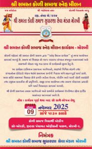 તમામ શ્રી કોળી સમાજ ના, આગેવાનો અને સભ્યોને કાર્યક્રમમાં ઉપસ્થિત રહેવા હાર્દિક આમંત્રણ આપવામાં આવે છે.