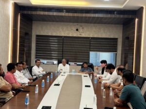 મોરબી:તા ૪ હળવદ રોડના ઉધોગકારોના પ્રશ્નોના નિરાકરણ માટે રુબરુ સ્થળ મુલાકાતે આવેલ ટંકારા પડધરીના ધારાસભ્યશ્રી દુર્લભજીભાઇ દેથરિયાએ ઉધોગકારો સાથે એકોડઁ સ્લેબ ટાઇલ્સમા મિટીંગ કરેલ.ખાસ ઉંચી માંડલ થી તળાવિયા રોડ પર ટ્રાફિક ને અડચણ રુપ થતી બને સાઇડની ૧૧ કેવીની વિજ લાઇનોને અંડર ગ્રાઉન્ડ કરી વીજપોલ દુર કરવા પીજીવીસીએલના સંબંધિત અધિકારીઓને સુચના આપી તેમજ એકોડઁ સિરામિક પાસે નર્મદા કેનાલ ઉપરનના બ્રિજને પહોળો કરવા નર્મદા વિભાગના અધિકારીઓને માર્ગદર્શન આપ્યું તેમજ તળાવિયા શનાળા ગામથી નીચી માંડલ ના કાચા માર્ગને સીસી બનાવવા તેમજ ઘુંટુ ગામથી તળાવિયા શનાળા રોડ સુધીના કાચા માર્ગને સીસી તેમજ તળાવિયા શનાળા સીસી રોડને પહોળો બનાવવા સ્થળ વિઝિટ કરી.ઉધોગકારોને સરકારની યોજનાઓ વિશે માહિતગાર કર્યા આ મિટિંગમા સિરામિક એસોસિએશનના પુર્વ પ્રમુખશ્રી નરભેરામભાઇ સરડવા, પુર્વ ઉપપ્રમુખશ્રી નરેન્દ્રભાઈ સંઘાત ,કેપેકસીલના સિરામિક પેનલ ચેરમેન શ્રી નિલેશભાઈ જેતપરિયા,નિલસન ગૃપના સંજયભાઈ માકાસણા સાથે અગ્રણી ઉદ્યોગપતિ ભગવાનજીભાઈ, કેતનભાઈ (બાથેરો ગૃપ), જીતુભાઈ (લેવીસ ગૃપ) તેમજ યુવા ઉધોગકારોએ ધારાસભ્યશ્રી દુર્લભજીભાઇ દેથરિયાનુ સ્વાગત અભિવાદન કર્યું