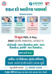 મોરબી:તા ૨૦ મોરબી આયુષ હોસ્પિટલ ખાતે આવતી કાલે રવિવાર અને ૨૧ ડિસેમ્બર ના રોજ રાહતદરે આરોગ્ય પરામર્શ: .: રાહત દરે આરોગ્ય પરામર્શ