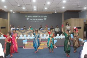 વિદ્યાર્થીઓએ ફ્લોરેન્સ નાઈટીંગેલના આદર્શોને અનુસરી ‘લેમ્પ લાઈટિંગ’ તથા ‘ઓથ સોન્ગ’ દ્વારા માનવસેવાના પવિત્ર શપથ લીધા હતા.